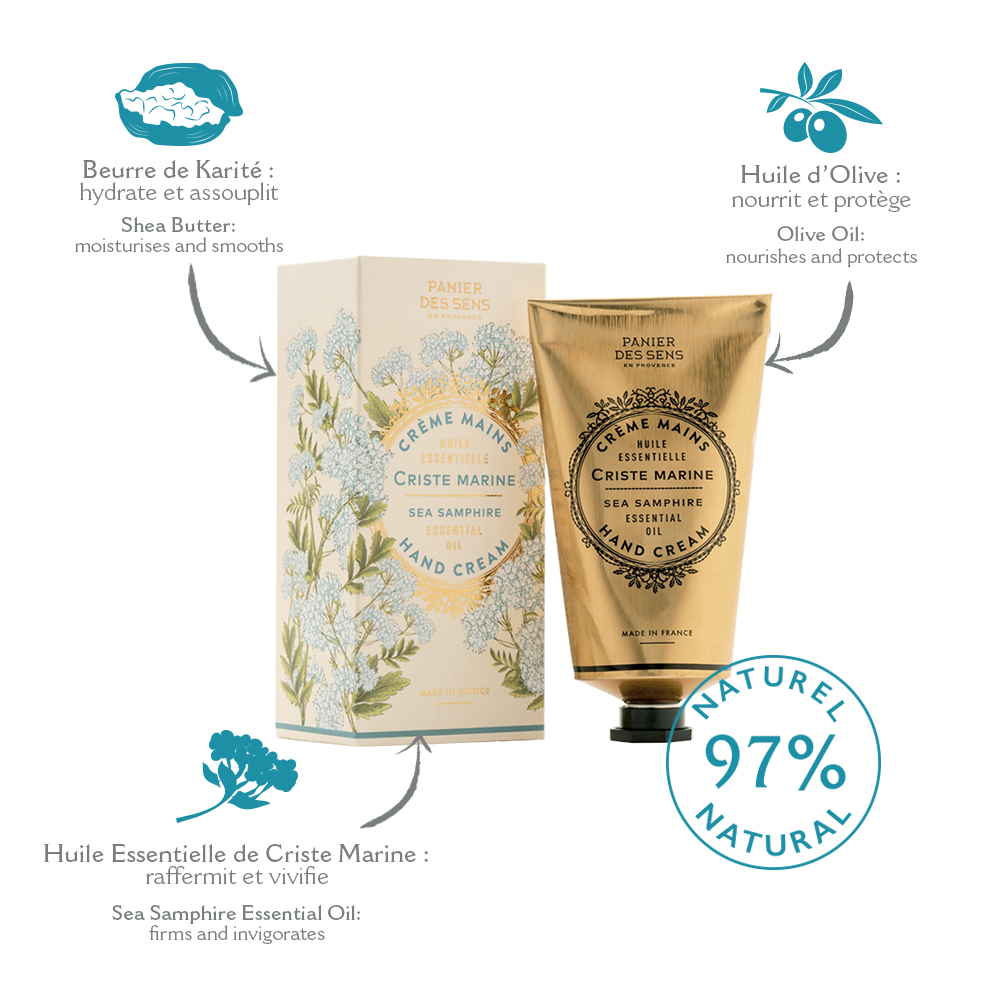 海茴香是一種小型海濱植物,富含鉀、碘和維生素C等海洋鹽和礦物鹽。這種海洋活性成分來護理成熟和鬆弛的皮膚。由於其再生、緊緻和纖體特性,傳統上用於減肥和對抗脂肪。